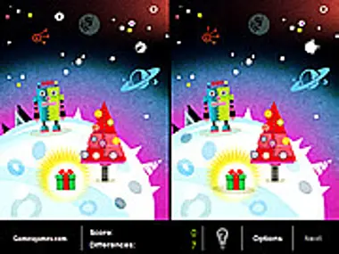 Find the differences between the two pictures to progress the Christmas story with robots.