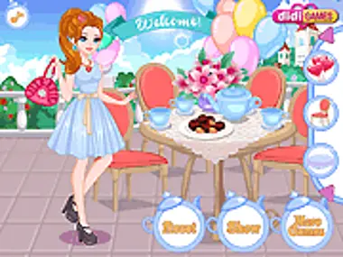 Kamu diundang ke pesta teh Alice! Dia sudah menyiapkan kue-kue enak dan membuat teh untuk para tamu. Bisakah kamu membantunya menata meja? Pilihlah taplak meja yang bagus, cangkir teh, dan hias seluruh meja. Tapi sebelum itu, alangkah baiknya jika kamu bisa memilihkan pakaian untuknya.