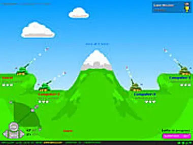 Adjust power and angle to fire at the enemy tanks. Watch that wind direction! Single player only.