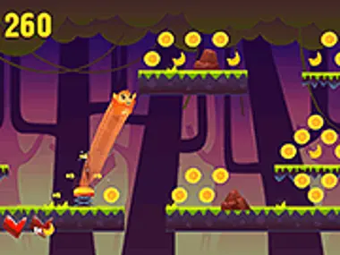 Pisang, pisang, pisang! Kamu adalah seekor monyet kecil di hutan dan harus mengumpulkan koin sebanyak mungkin dalam permainan keterampilan yang menyenangkan ini. Lompat dari platform ke platform, hindari musuh dan rintangan lain, serta jangan sampai jatuh ke jurang berbahaya. Jika kamu terluka, kamu bisa memulihkan kesehatan dengan mengumpulkan pisang lezat. Tingkatkan power-up yang berguna dan cobalah meraih skor tinggi!
