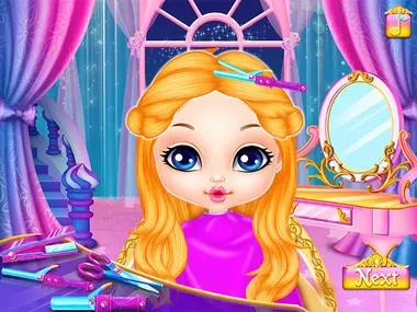 Give this beautiful baby her first ever haircut. Cut, curl and color her hair the way you want it to be!