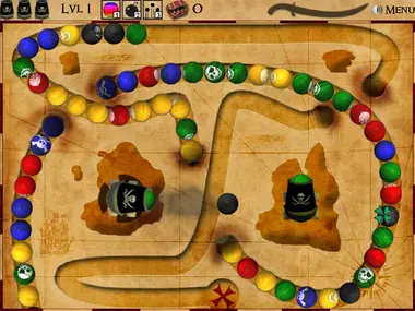 Shoot the balls with other similarly colored balls to make them disappear before they reach the end.