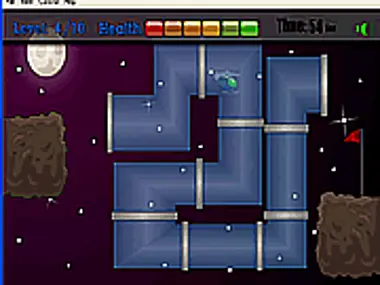 The copter must reach the flag. You can hit walls without loosing health, but if you hit the mines you loose life.
