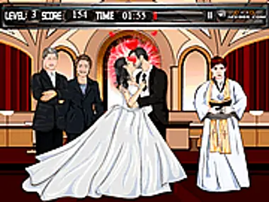Dalam upacara pernikahan ini, Chelsea Clinton yang anggun bersama Marc Mezvinsky ingin menunjukkan cinta mereka dengan berciuman. Dan mereka ingin berciuman sebelum ketahuan orang lain, bilah level target akan meningkat selama mereka berciuman. Selesaikan bilah level target dalam waktu yang ditentukan, waspadalah, jika ada yang melihat maka Anda kalah dalam permainan.
