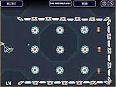In this game you have a cannon that launches energy balls. There are different objects that effect the balls trajectory and/or are effected by the balls. Your goal is to hit the exit button in each level. You'll normally need to move other objects and be very precise.