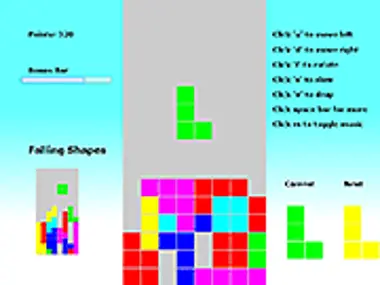 Falling Shapes adalah permainan Tetris tradisional di mana tujuannya adalah untuk mendapatkan skor tertinggi dengan berulang kali meruntuhkan 6 elemen berwarna dari bentuk-bentuk tersebut. Pengguna harus menyusun bentuk-bentuk hingga memenuhi satu baris sepenuhnya agar baris tersebut runtuh. Pemain dapat memilih 10 kali untuk memperlambat jatuhnya bentuk-bentuk, jadi strateginya adalah mengatur penggunaan fitur perlambatan tersebut untuk digunakan saat paling dibutuhkan.