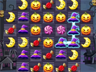 Sedang mencari kesenangan dan kegembiraan di Halloween ini? Kalau begitu, bersiaplah untuk bersenang-senang saat Anda bermain Happy Halloween. Geser item-item yang sejenis untuk menghancurkannya dan membuka semua level. Coba singkirkan semua peti mati dan buat kelelawar serta hantu jatuh ke baris paling bawah. Selesaikan semua persyaratan dalam batas gerakan dan waktu yang diberikan. Lihat seberapa jauh Anda bisa melangkah. Tangan untuk menambahkan 5 gerakan; Sapu untuk menghilangkan satu karakter; Ramuan untuk menghilangkan 9 karakter, dan Tengkorak untuk menghilangkan semua karakter yang berjejer secara horizontal. Anda juga bisa menggunakan Kekuatan Spesial dan Kekuatan Campuran. Mainkan game menantang ini hanya di y8.com