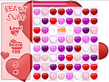 Match the hearts by swapping them in order to create 3 or more hearts of the same kind in a line.