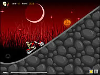 Ride your bike as a skeleton over the hills. Try to grab all the pumpkins you can. Don't crash!