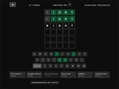 Learndle adalah teka-teki kata dengan petunjuk cerdas (definisi, contoh kalimat, sinonim/antonim). Pilih tingkat CEFR (A1–C2) dan panjang kata, lalu tebak kata tersebut dalam 6 percobaan. Mainkan untuk memperkaya kosakata Anda. Anda memiliki 6 percobaan untuk menebak kata tersembunyi. Warna huruf menjelaskan kemajuan Anda: Posisi benar, Ada dalam kata tapi posisi salah, Tidak ada dalam kata, Antarmuka Gunakan keyboard atau tombol di layar untuk mengetik. Tombol Enter mengirim, x menghapus. Poin Total dibagikan dan dapat dibelanjakan untuk petunjuk. Selamat menikmati permainan teka-teki kata ini di Y8.com!