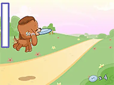Make doggy jump and catch frisbees. Hold spacebar a little longer to jump higher.