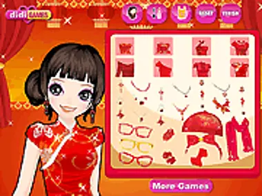 Joy adalah seorang gadis Tionghoa yang cantik. Dia akan bertemu teman-temannya hari ini di pusat kota. Bantu dia bersiap-siap untuk pertemuan ini dengan memilihkan pakaian untuknya. Dia harus terlihat seperti seorang putri Tionghoa!