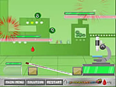 Create explosions near the germs to get them to fly into the containers.