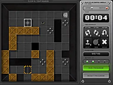 Help! Melvin is a programmer trapped in a thankless job on the 15th floor of ToolCorp headquarters! Help him and his robot BLIX escape by programming the robot so that both he and Melvin can reach the exit!