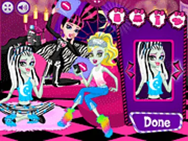 Pesta piyama wajah lucu Elsa pasti telah menginspirasi beberapa orang di luar sana dan aku tidak hanya berbicara tentang penggemar Elsa, tetapi juga tentang para ghoul Monster High ini yang juga mengadakan pesta piyama gila mereka sendiri! Mau bergabung dengan mereka? Akhir pekan ini Draculaura, Lagoona Blue, Frankie Stein, dan kamu akan bersenang-senang! Jadi, cepatlah bergabung dengan para ghoul untuk memulai permainan berdandan 'Monster Slumber Party Funny Faces' untuk anak perempuan dan mulailah dengan memilih piyama berwarna-warni untuk setiap gadis cantik di sini. Jelajahi koleksi piyama berwarna-warni mereka yang mengesankan dengan motif lucu atau dihiasi detail super feminin seperti renda, rumbai, atau pita, lalu pilih favoritmu untuk pertama-tama mendandani Frankie Stein, lalu Draculaura dan Lagoona Blue! Lengkapi penampilan pesta piyama yang telah dipilih dengan sepasang sandal yang serasi. Setelah selesai, kamu bisa pergi ke halaman kedua permainan untuk melihat apa yang terjadi selanjutnya: Draculaura bangun di tengah malam dengan ide gila ini untuk menutupi wajah kedua gadis lainnya dengan desain lucu. Tentu saja kamu akan membantunya dan bahkan lebih... dia akan menggambar sesuatu pilihanmu.