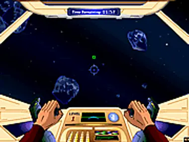 This game consists in shooting and destroying approaching asteroids from a moving spaceship.