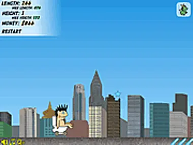Luncurkan si idiot total ini untuk mendandani toiletnya. Terus tambahkan kekuatan mesin ekstra, akselerator, dan modifikasi tidak bertanggung jawab lainnya untuk mencapai luar angkasa. Beli topi konyol seharga $40000 atau mungkin menabung $1000000 yang sangat besar untuk membuka upgrade rahasia terakhir?