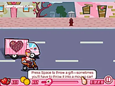 Kirimkan kotak-kotak cokelat kepada pelanggan yang sedang dimabuk asmara. Ambil koin dan cokelat tambahan sambil menghindari lalu lintas.
