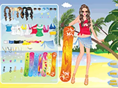 Dia sangat suka berselancar, tapi dia juga ingin tampil menawan di pantai saat dia akan berselancar. Berikan dia bantuan dengan pakaian dan aksesori dan bantu dia tampil memukau di pantai.