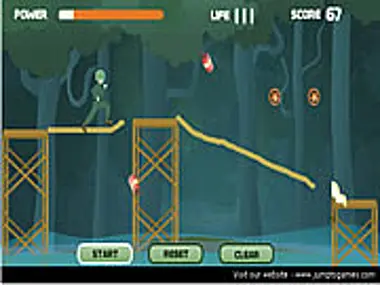 Reach the white flag avoiding bombs and collect as much stars as you can.