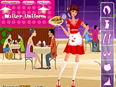 Bayangkan dirimu adalah seorang perancang busana, lalu dandani pelayan berambut pirang yang fantastis ini dengan beragam seragam dan aksesori warna-warni dari koleksi. Pastikan kamu mengganti gaya rambut dan celemeknya agar dia terlihat sangat elegan untuk restoran ini. Selamat bersenang-senang!