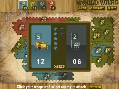 Take the world by force! Battle 1 to 7 opposing armies, wage war and strategize your way to Victory!